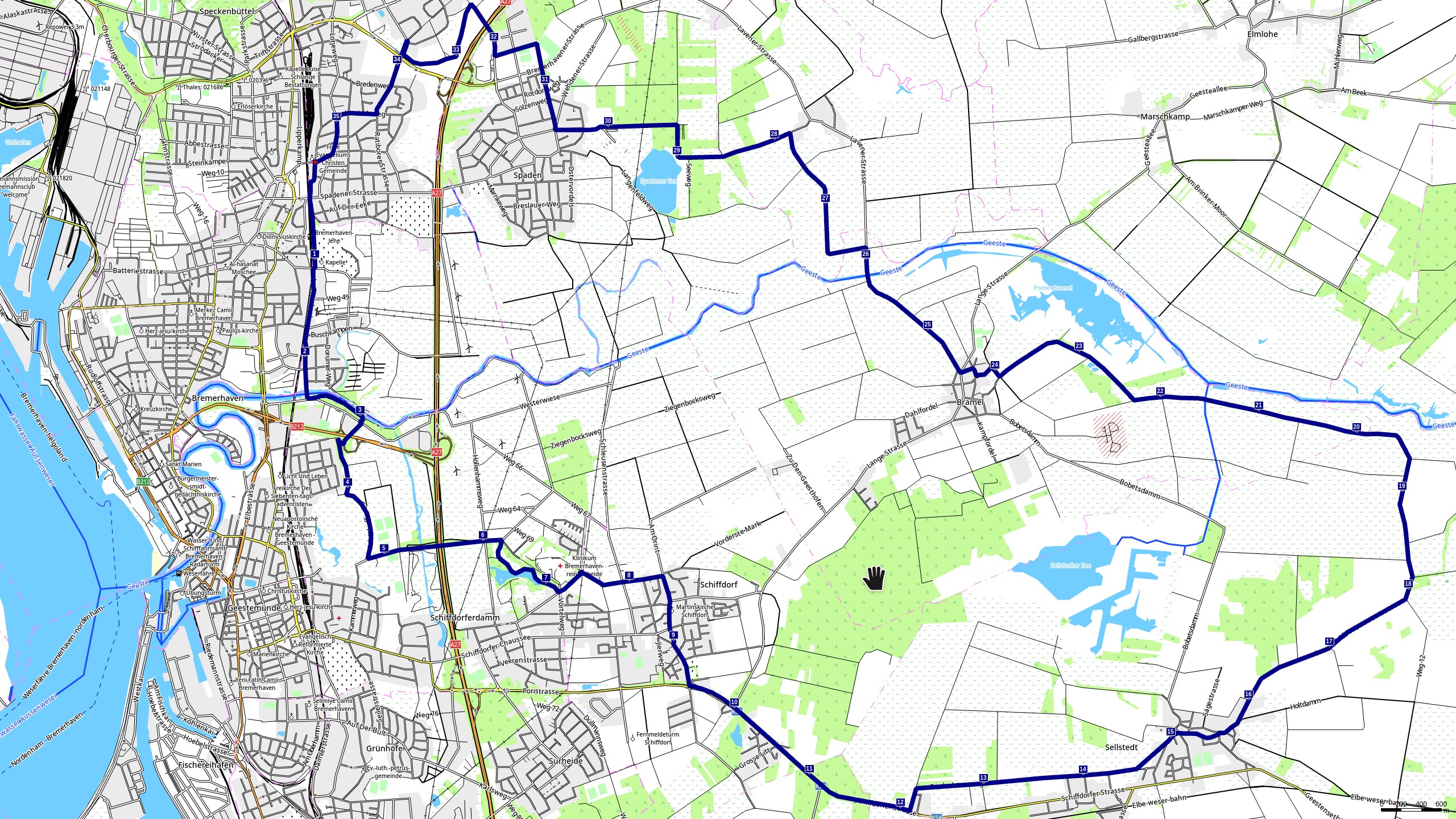 Ausgangspunkt ist Bremerhaven, Kaufland Pferdebade hinter der Bahnunterführung (Dwarsweg).